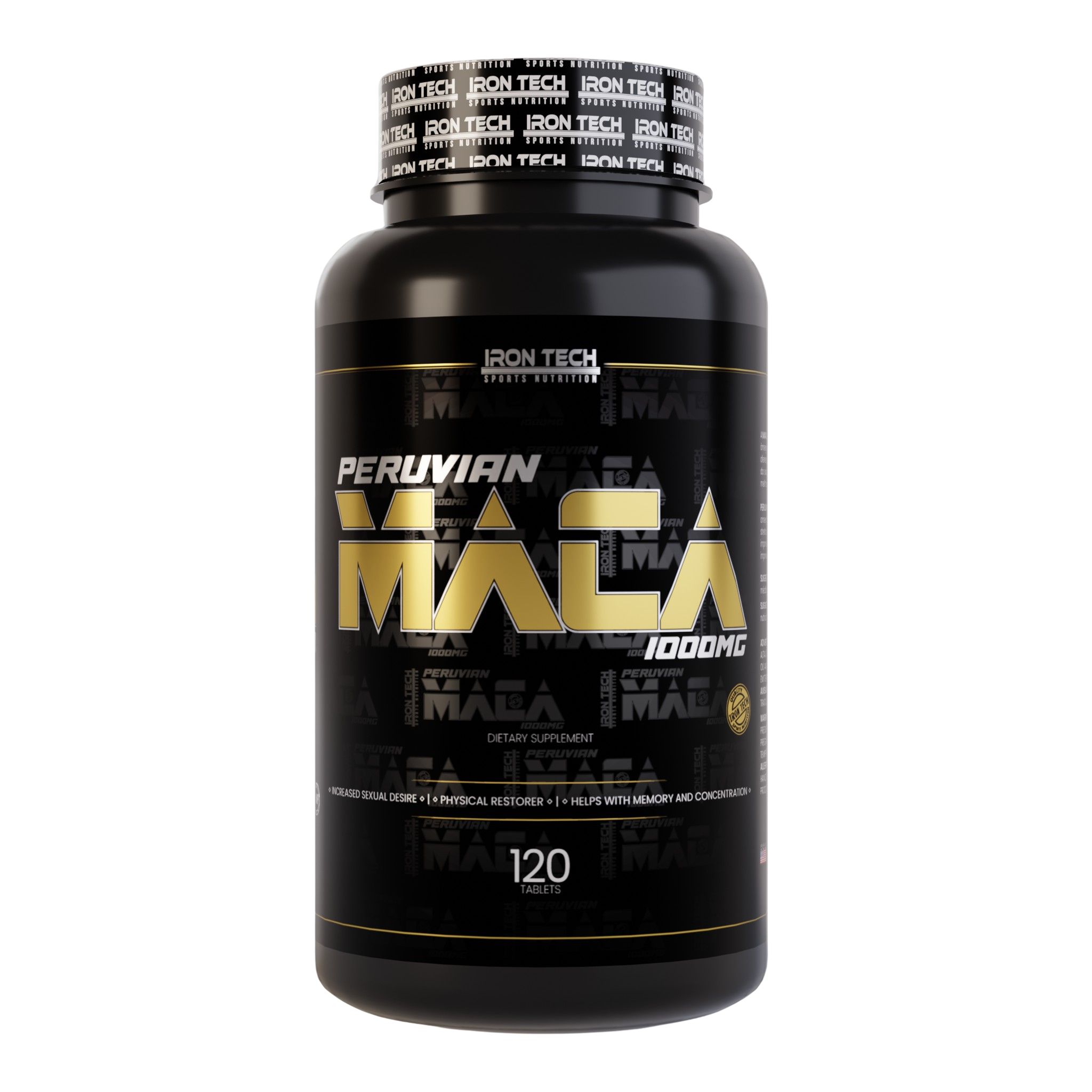 Maca Negra Peruana em pó, Ácido Ascórbico (Vitamina C), Óxido de Zinco, Acetato de Retinol (Vitamina A), Antiumectantes, Magnésio, Fosfato Tricálcico, Dióxido de Silício e Estabilizantes Estearato de Magnésio.